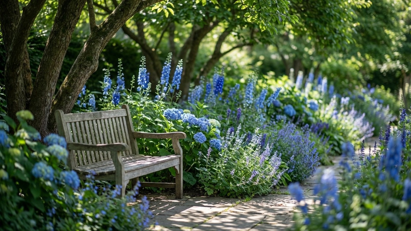 Un banc à l’ombre, un léger vent, et cette impression que le jardin parle plus bas. Souvent, ce calme vient d’une couleur. Le bleu. Dans un massif, il agit comme un “volume bas” visuel : il recule, il adoucit, il relie les astuces-naturelles-pour-fleuristes-et-amoureux-des-fleuris-du-froid-meme-sans-serre »>plantes« >plantes-cet-hiver »>plantes entre elles. Et quand ce bleu est porté par des plantes pérennes, le décor ne se défait pas au bout de trois arrosages.